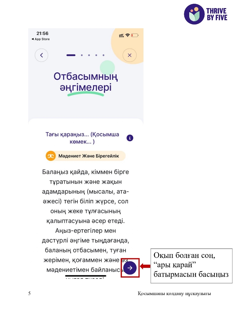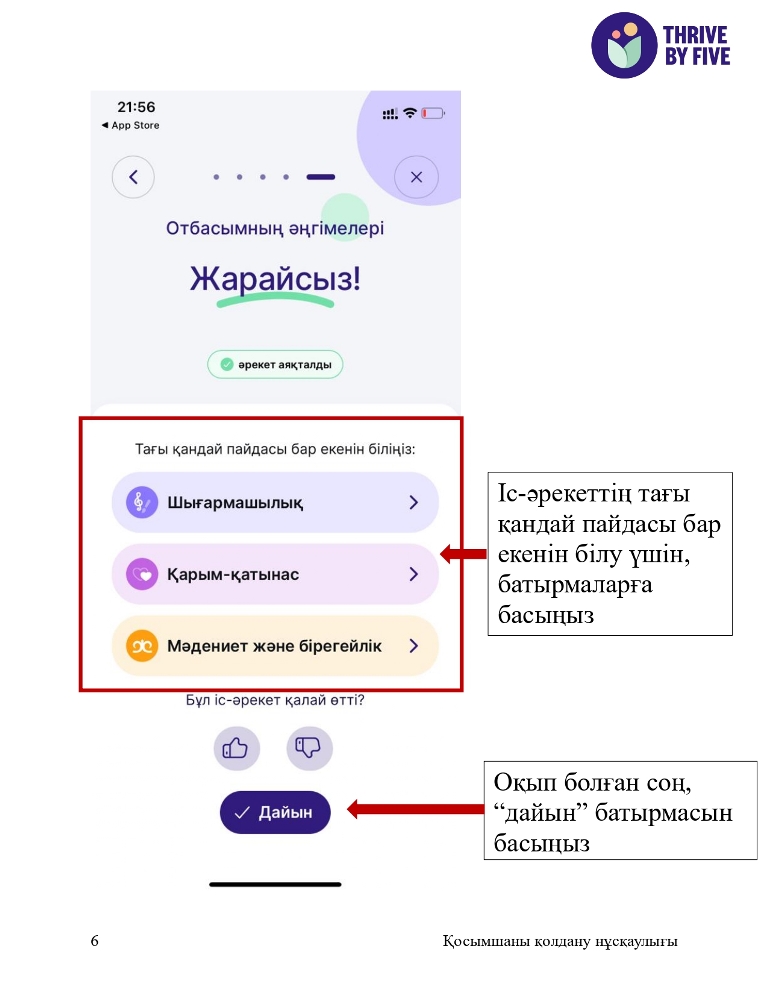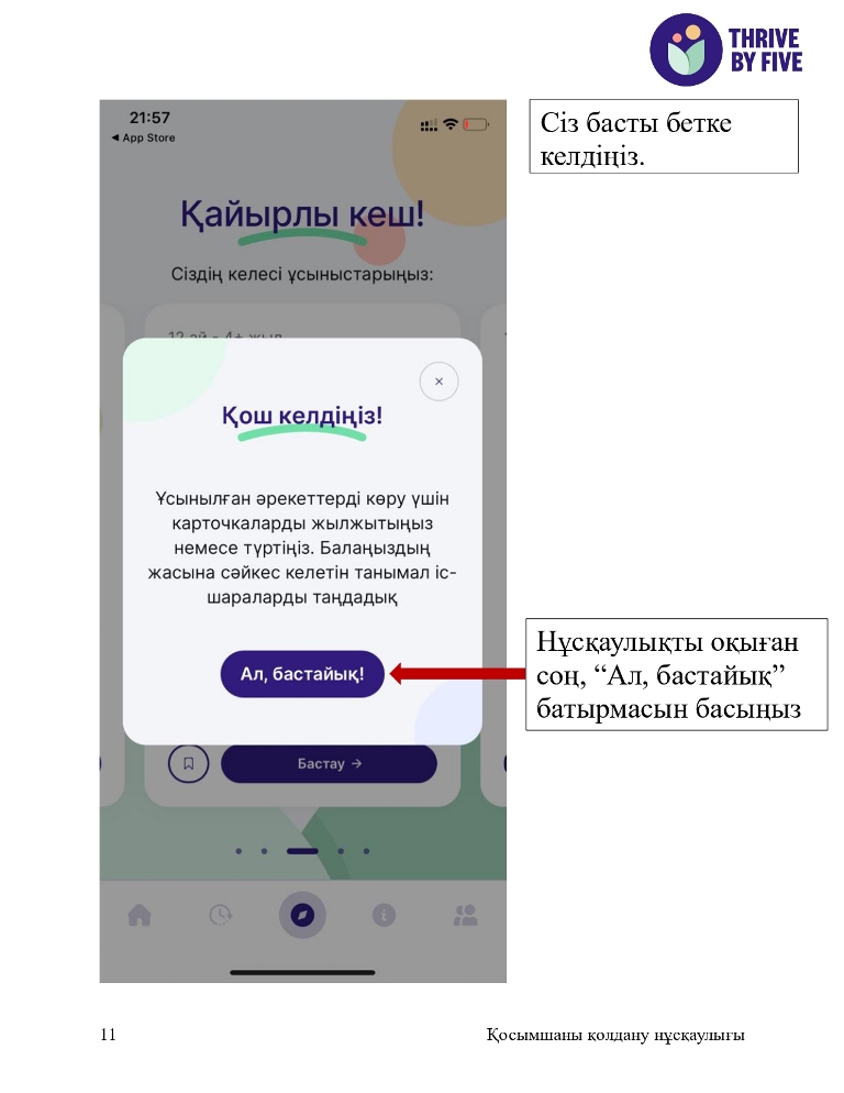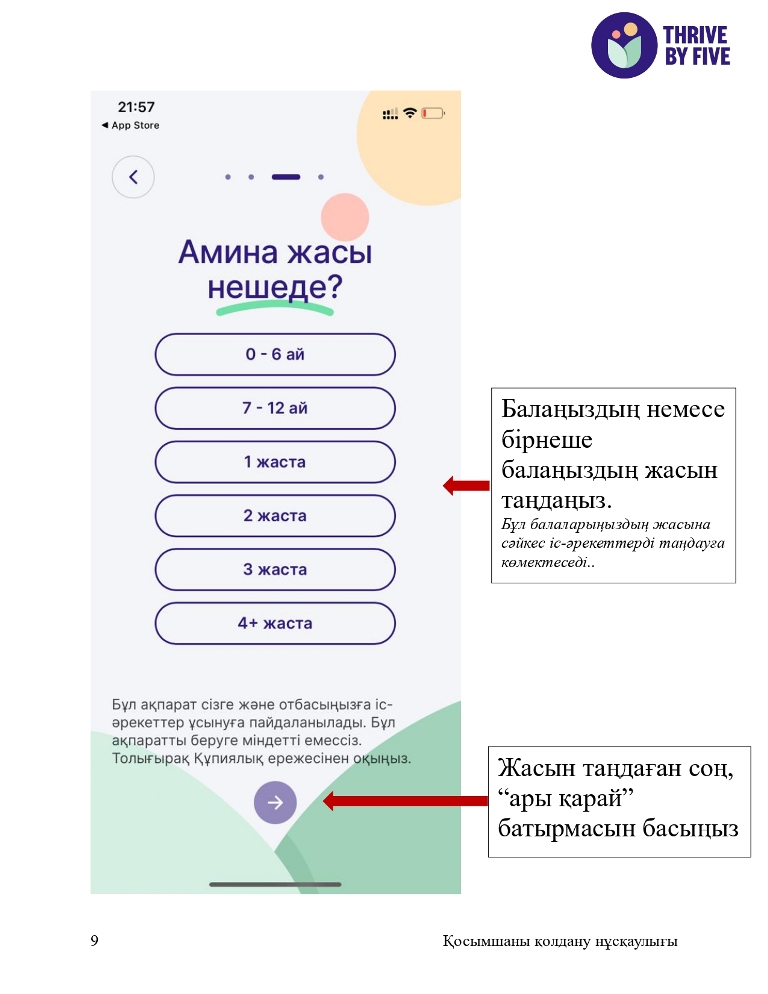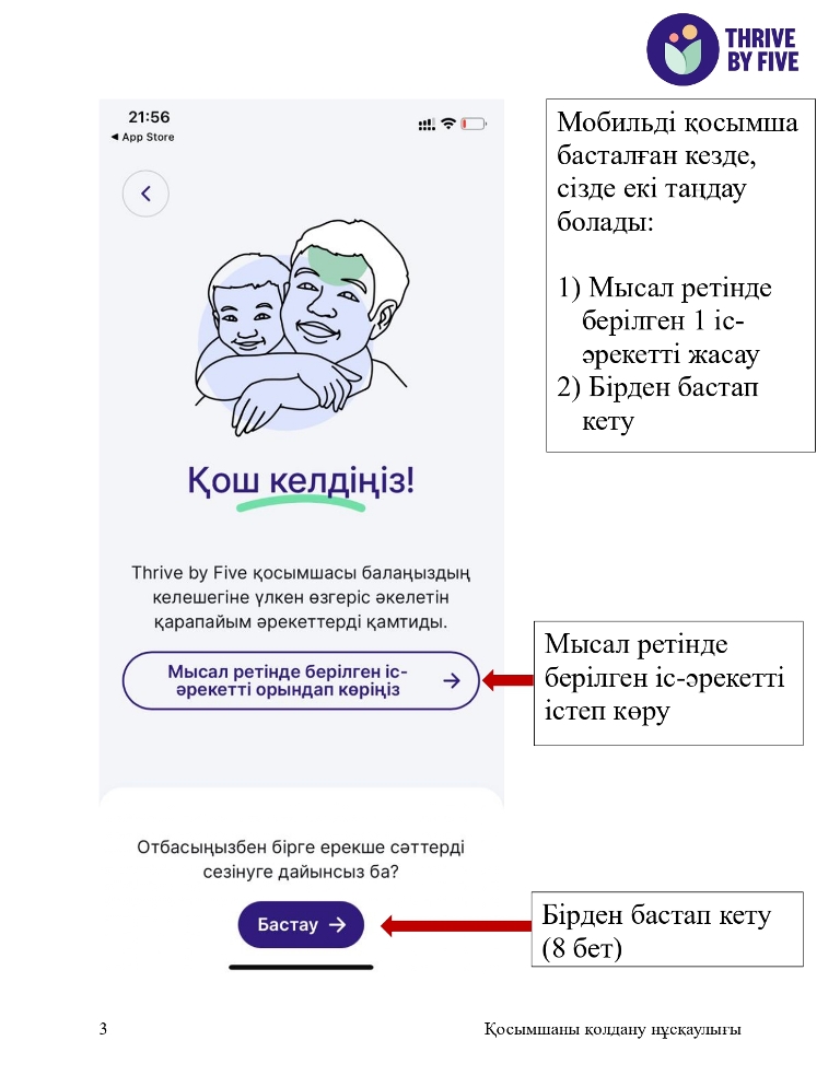 Мобильное приложение «Беске дейін үлгер» (международное название - Thrive by Five) разработано Министерством просвещения РК совместно с австралийским благотворительным фондом Minderoo на основе нейробиологических исследований Сиднейского Университета Разума и Мозга и адаптировано к потребностям и контексту нашей страны.