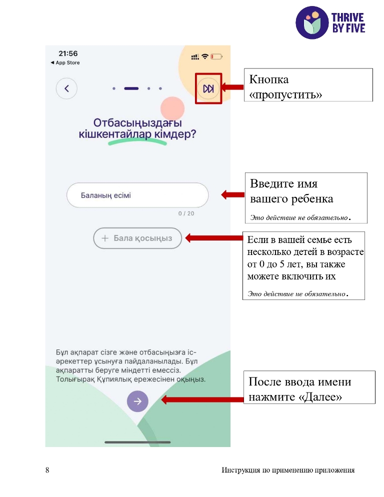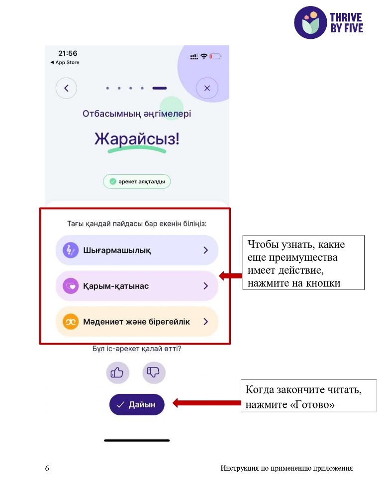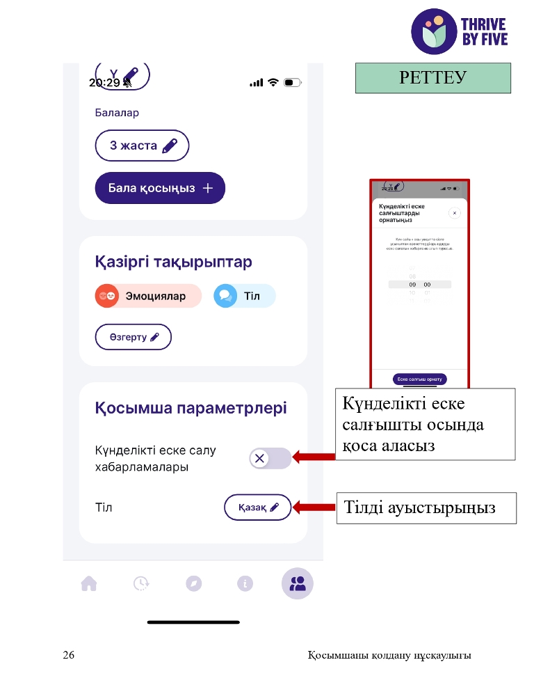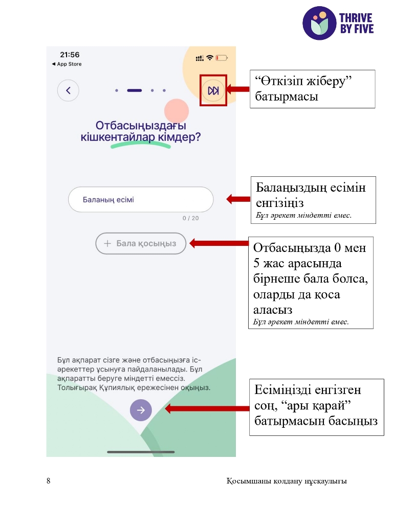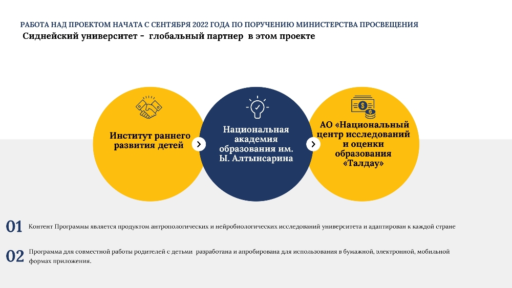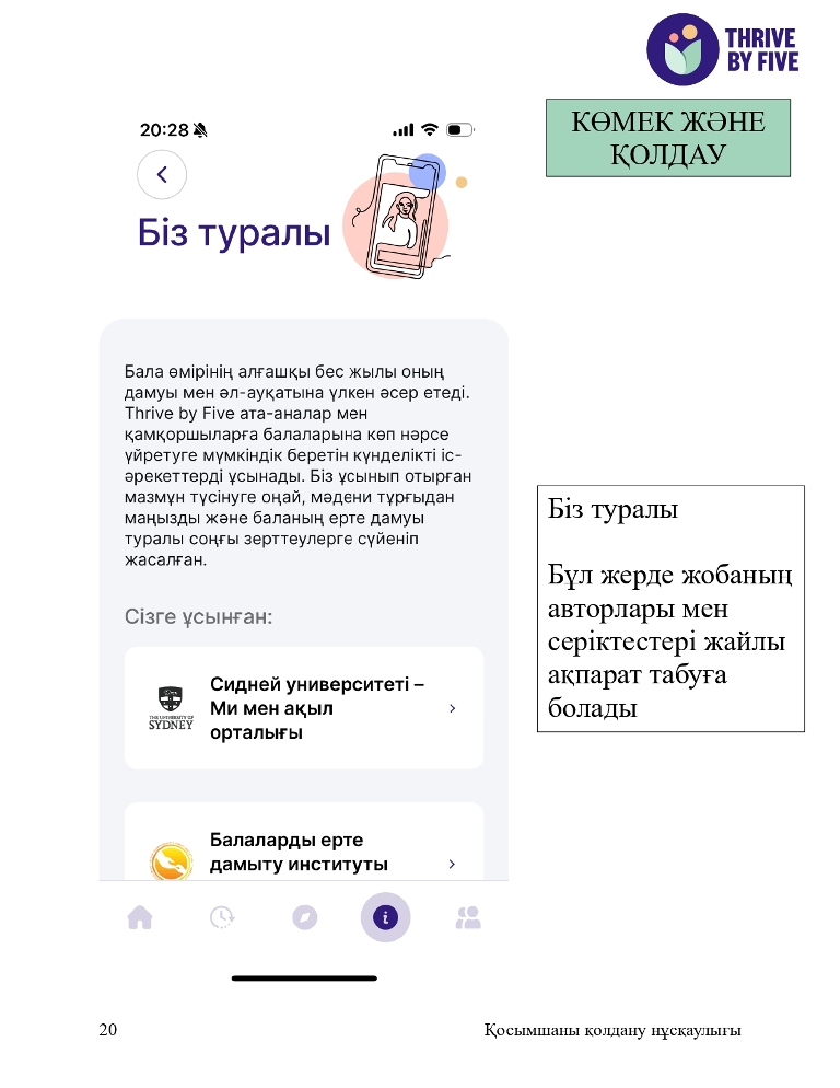 Мобильное приложение «Беске дейін үлгер» (международное название - Thrive by Five) разработано Министерством просвещения РК совместно с австралийским благотворительным фондом Minderoo на основе нейробиологических исследований Сиднейского Университета Разума и Мозга и адаптировано к потребностям и контексту нашей страны.