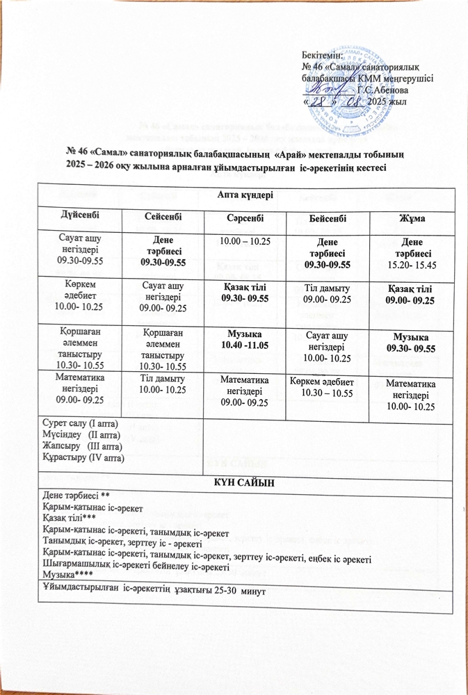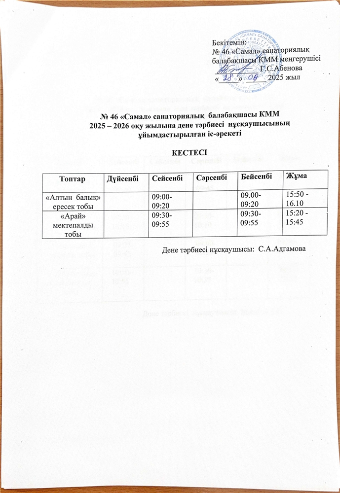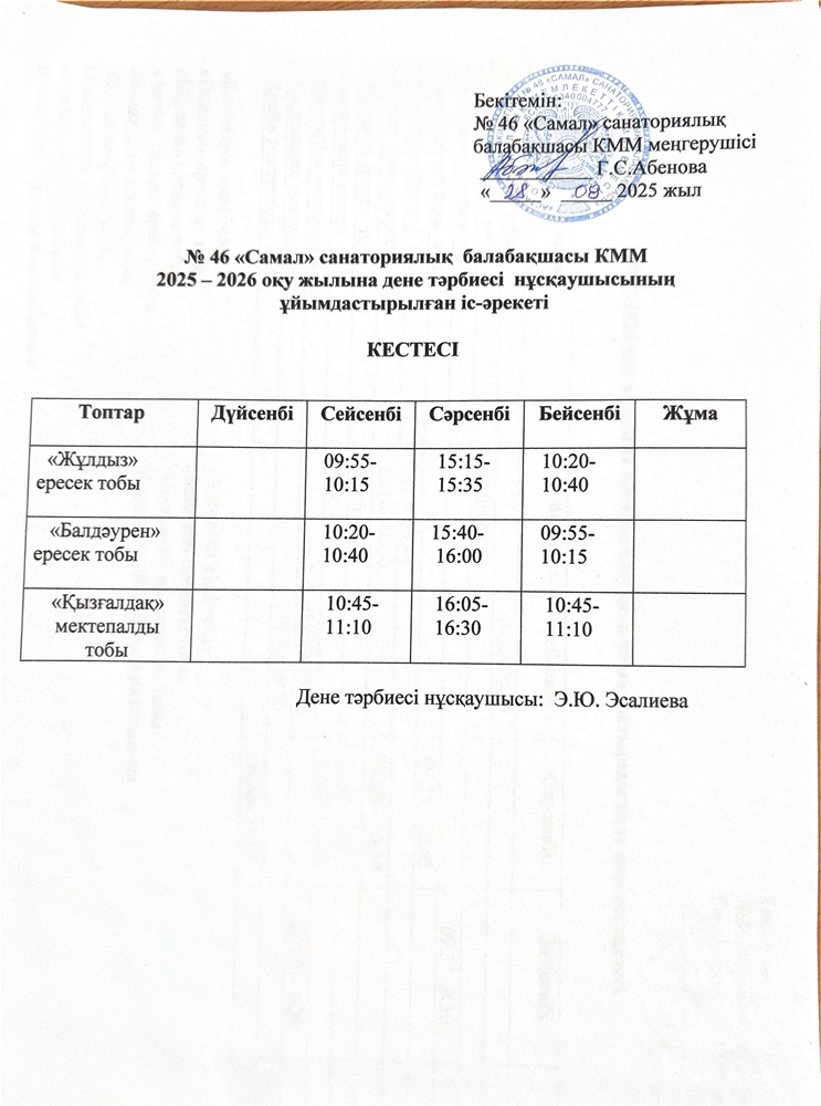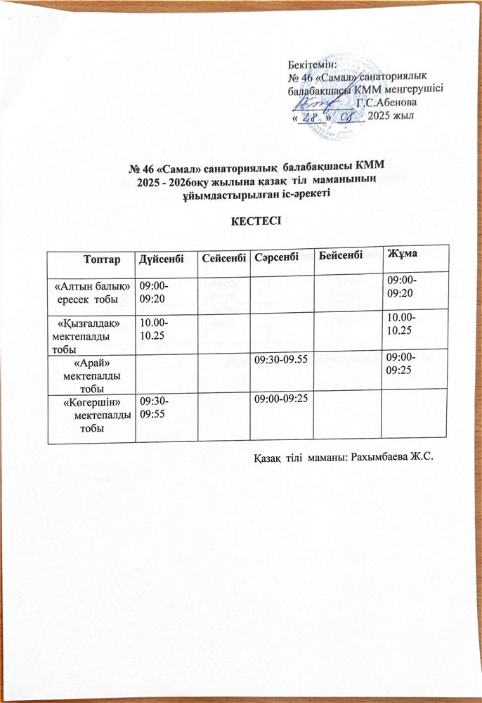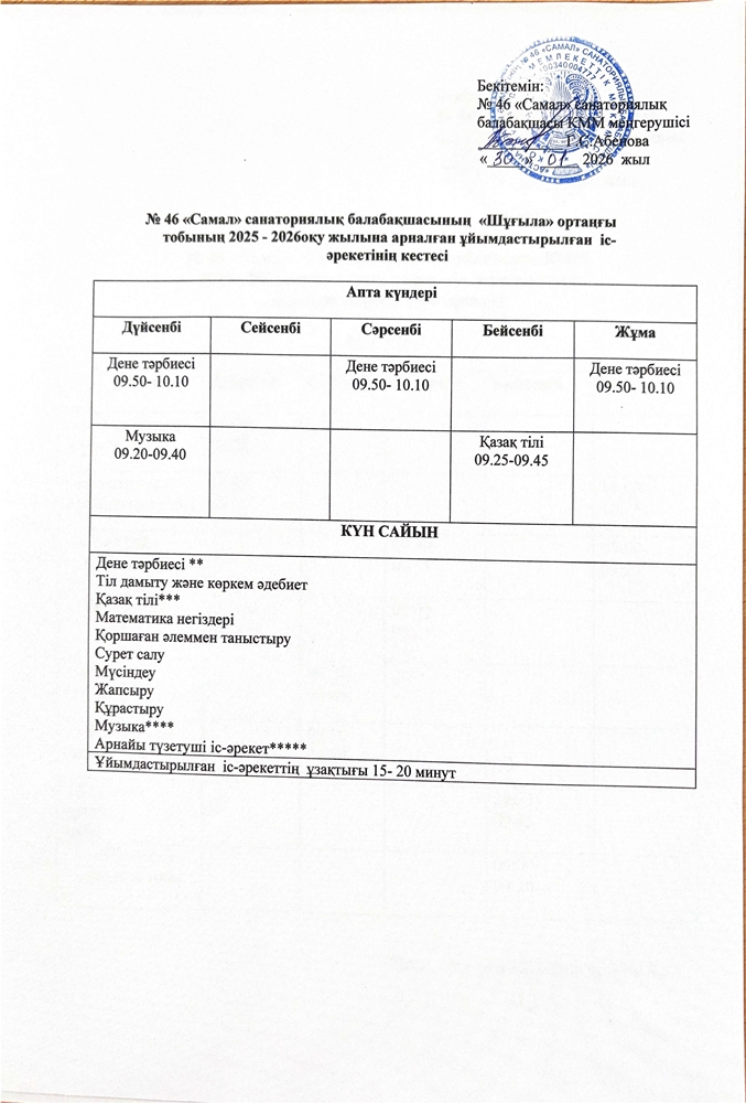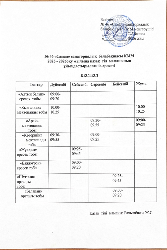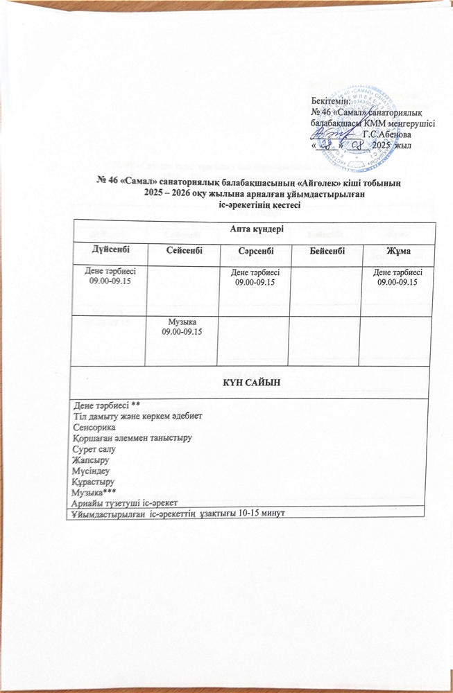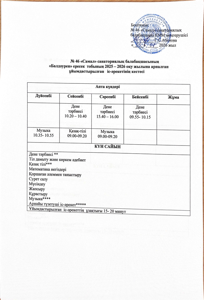 Астана қ. әкімдігі №46 "Самал" санаторлық балабақшасы